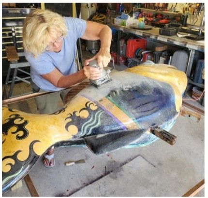 scavenging scrap yards and flea market-type vents collecting mostly metal pieces that can be reused, re-cycled into one-of-a-kind garden art. My studio is filled with a wealth of